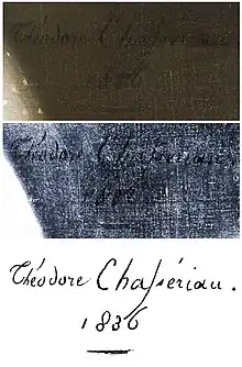 La technique si particulière du jeune Théodore Chassériau est exprimée ici par des coups de pinceau fermes et resserrés qui donnent cette élégance de matière colorée : cette technique, même à son apogée, sera reconnaissable dans son originalité. La lumière infrarouge met tout à fait en évidence à la fois la qualité du dessin dans ses justes proportions, et celle de la couche picturale dans ses rapports de couleurs qui font tourner les formes par la justesse de la répartition des valeurs. Couche après couche, l’expression de ces grands yeux se façonne, les volumes se mettent en place – on discerne à ce propos les nombreux repentirs – et la vérité de l’enfant, sa grâce et sa joliesse se révèlent et sont structurés sans défaut. Le Romantisme est alors évident. La signature et la date – portées au tiers inférieur droit – sont bien visibles en lumière infrarouge, démontrant par là-même qu’elles font partie de la couche picturale et qu’elles ont donc été apposée au terme de sa réalisation[4].