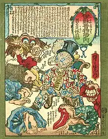 Ambrose Bierce a appliqué la fable aux conflits du travail dans ses Fantastic Fables (1899). Lorsque les ouvriers d'une usine de chaussures se mettent en grève pour de meilleures conditions, dans sa réécriture satirique, le propriétaire y met le feu afin de percevoir l'assurance et les laisse ainsi sans travail[11]. Une estampe japonaise légèrement antérieure de Kawanabe Kyōsai dans sa série Isoho Monogotari (1870-1880) avait également donné à la fable une application commerciale. Intitulé Le Paresseux au milieu, il montre le ventre assis fumant une pipe tandis que les membres du corps disjoints rampent sur le sol autour de lui. Sa large cravate est étiquetée « Financier » en lettres occidentales afin de ne laisser aucun doute à son interprétation. Dans ces deux cas, l'argument du centre comme soutien est renversé. Loin de maintenir les membres en vie, les soucis égoïstes et les exigences avides du ventre sapent leur énergie.