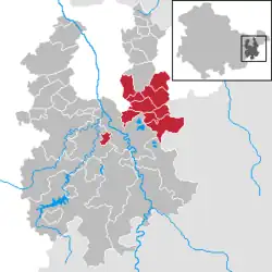 Elle est située dans l'est de l'arrondissement, à la limite avec la ville de Ronneburg au nord, l'arrondissement de Zwickau (Saxe) à l'est, la ville de Berga/Elster au sud et les villes de Weida et Gera à l'ouest.