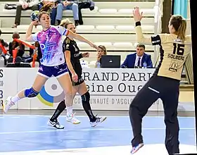 Rencontre de championnat entre Issy Paris Hand et Dijon. À Issy Les Moulineaux, le 22 avril 2017.