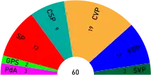 | Parti démocrate-chrétien (PDC) | 30,90 % | 19 |