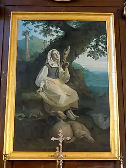 - Vémars (Val-d'Oise), église Saint-Pierre-et-Saint-Paul : Sainte Geneviève, 1854, huile sur toile, tableau de retable. Assise sur un talus, à l'ombre d'un arbre qui domine une vallée profonde, sainte Geneviève file sa quenouille, et semble perdue dans ses pensées, le regard tourné vers le ciel et donc vers Dieu. À ses pieds, plusieurs moutons se reposent ; à l'arrière-plan, un calvaire se dessine devant de majestueuses montagnes[10].