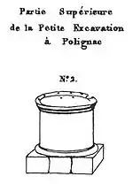 - De même on en rencontre dans les maisons du bourg. Auguste Aymard a retrouvé des cippes dans l'église de Polignac. Les dernières fouilles archéologiques (celles de Louis Simonnet en 1984 et celles du groupe Hadès en 2003) montrent que le site de Polignac a été occupé à l'époque de la Tène III (vers 150 avant Jésus-Christ) et à l'époque gallo-romaine. Un historique du peuplement du lieu depuis la préhistoire a même été reconstitué par A. Pau.