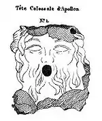 Le masque d'Apollon est une pierre antique de granit gris qui dessine en relief les traits d'un homme doté d'une large chevelure et d'une barbe foisonnante. Ses dimensions sont d'1,15 m de hauteur et 1,20 m de largeur.