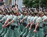 - Pas cadencé : le pas de la Légion est plus rapide (160 à 190 pas par minute) que dans le reste de l'armée espagnole (90 pas par minute) ;