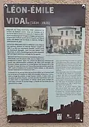 - Par délibération du conseil municipal en date du ], en hommage au « bienfaiteur des pauvres gens et des ouvriers, une rue de la commune portera son nom "Avenue du Docteur Vidal, bienfaiteur de l'Hôpital". »