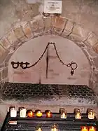 Les armoiries de la ville de Saint-Léonard-de-Noblat, dans le Limousin, portent les fers des prisonniers libérés par les prières de saint Léonard.