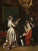 La complexité de la composition, avec une mise en miroir de l'artiste présente à son chevalet, du sujet (« l'élève intéressante ») et d'une gravure érotique de Fragonard, a suscité de nombreux commentaires et interprétations, et une question encore non résolue sur l'identité de la personne représentée.