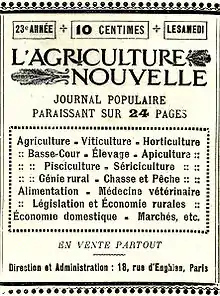L'Agriculture nouvelle est un ancien périodique français, le supplément agricole du Petit Parisien.