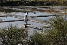 Récolte de la fleur de sel, Jardins des Salines, 2010.