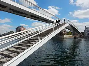 Du côté de Jambes, la passerelle permet un accès direct aux Quais où se trouve la nouvelle Place de la Francophonie. Un glacier s'est également installé à cet endroit. À droite de la passerelle, les promeneurs longent la Villa Balat, une maison de style Belle-Époque.