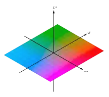 L'étoile après les symboles L*, a*, b* évite la confusion avec les paramètres du modèle Hunter Lab développé progressivement à partir de 1948. Bien que fondés sur les mêmes principes, les deux espaces donnent des résultats numériques très différents[2],[alpha 1].