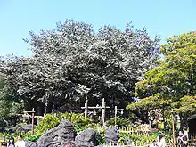 Au-dessus de l'arbre flotte un drapeau suisse, seule nation dont un drapeau flotte dans le parc en dehors des États-Unis[1].