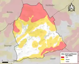 Le retrait-gonflement des sols argileux est susceptible d'engendrer des dommages importants aux bâtiments en cas d’alternance de périodes de sécheresse et de pluie. 69,7 % de la superficie communale est en aléa moyen ou fort (90,2 % au niveau départemental et 48,5 % au niveau national). Sur les 353 bâtiments dénombrés sur la commune en 2019, 251 sont en aléa moyen ou fort, soit 71 %, à comparer aux 91 % au niveau départemental et 54 % au niveau national. Une cartographie de l'exposition du territoire national au retrait gonflement des sols argileux est disponible sur le site du BRGM[23],[24].