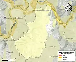 Le retrait-gonflement des sols argileux est susceptible d'engendrer des dommages importants aux bâtiments en cas d’alternance de périodes de sécheresse et de pluie. 3,4 % de la superficie communale est en aléa moyen ou fort (26,8 % au niveau départemental et 48,5 % au niveau national). Sur les 147 bâtiments dénombrés sur la commune en 2019, aucun n'est en aléa moyen ou fort, à comparer aux 36 % au niveau départemental et 54 % au niveau national. Une cartographie de l'exposition du territoire national au retrait gonflement des sols argileux est disponible sur le site du BRGM[18],[Carte 2].