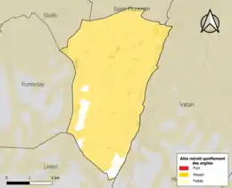 Le retrait-gonflement des sols argileux est susceptible d'engendrer des dommages importants aux bâtiments en cas d’alternance de périodes de sécheresse et de pluie. 94,9 % de la superficie communale est en aléa moyen ou fort (84,7 % au niveau départemental et 48,5 % au niveau national). Sur les 80 bâtiments dénombrés sur la commune en 2019, 80 sont en aléa moyen ou fort, soit 100 %, à comparer aux 86 % au niveau départemental et 54 % au niveau national. Une cartographie de l'exposition du territoire national au retrait gonflement des sols argileux est disponible sur le site du BRGM[24],[25].