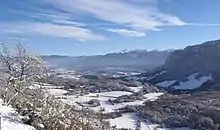 La Chapelle-en-Vercors, dans le Vercors Dromois. Les hauts plateaux sont visibles derrière le village. | |||||
