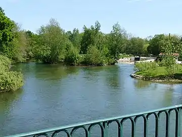 La Charente vue vers l'amont, depuis le pont de la route départementale 737.