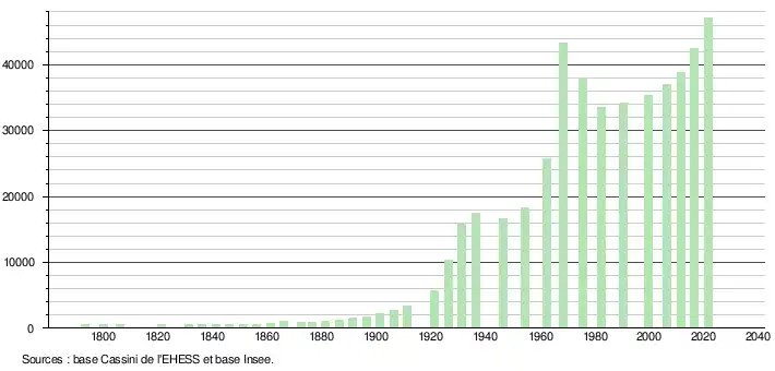 Par ailleurs, la commune fait partie de l'aire d'attraction de Paris, dont elle est une commune du pôle principal[Note 2]. Cette aire regroupe 1 929 communes[13],[14].