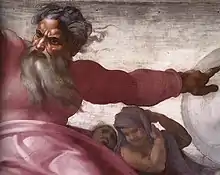 Avant la restauration, la fresque était fendue et noircie par des siècles de restauration incorrecte et d'exposition à la saleté et au noir de lampe des bougies. Le nettoyage a mis en lumière les couleurs éclatantes, au diapason des délicates variations chromatiques, notamment dans la draperie de la cape du Créateur. Elle a permis de redécouvrir à quel point même les ombres sont lumineuses grâce à la lumière intense qui frappe les protagonistes.