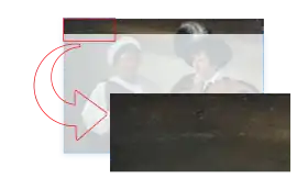La gitane porte un turban blanc et un châle bicolore, attaché sur l'épaule droite. Les mains de la voleuse indiquent un mouvement délicat. Le petit doigt de sa main gauche est redressé.