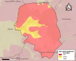 Le retrait-gonflement des sols argileux est susceptible d'engendrer des dommages importants aux bâtiments en cas d’alternance de périodes de sécheresse et de pluie. La totalité de la commune est en aléa moyen ou fort (90,2 % au niveau départemental et 48,5 % au niveau national). Sur les 149 bâtiments dénombrés sur la commune en 2019, 149 sont en aléa moyen ou fort, soit 100 %, à comparer aux 91 % au niveau départemental et 54 % au niveau national. Une cartographie de l'exposition du territoire national au retrait gonflement des sols argileux est disponible sur le site du BRGM[23],[24].