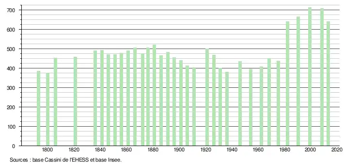 (Sources : Ldh/EHESS/Cassini jusqu'en 1999[14] puis Insee à partir de 2006[15].)