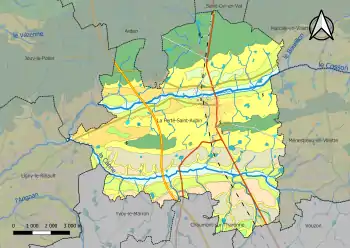 C'est la commune qui occupe la plus grande superficie du Loiret. La Ferté-Saint-Aubin a été formée par la réunion de deux villages, la Ferté plus au nord, et Saint-Aubin plus au sud.