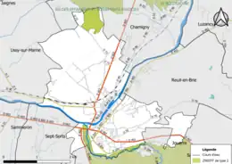 - la rivière la Marne, longue de 514,26 km[3], principal affluent de la Seine, ainsi que :