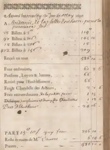 - La Folle Enchère, Comédie-Française, du 30 mai au 16 juin 1690, reprise les 14 et 16 janvier 1691, le 14 novembre 1691 à la Cour.