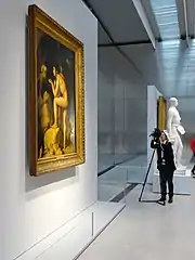 « Néoclassicismes »[LL 194] regroupe Le Peintre Élisabeth Vigée-Lebrun (1755-1842)[LL 195], Francis George Hare, dit Master Hare, enfant[LL 196], La Malédiction paternelle. Le Fils puni[LL 197], Vénus à la pomme[LL 198], Napoléon Bonaparte (1769-1821), Empereur des Français de 1804 à 1815, sous le nom de Napoléon Ier[LL 199], Athénienne, meuble de toilette pour la chambre de Napoléon Bonaparte (1769-1821), alors premier consul, au palais des Tuileries[LL 200], Assiette d'un service à dessert dit Service encyclopédique : fabrique de charbon[LL 201] et La Trinité-des-Monts et la villa Médicis, à Rome[LL 202].