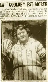 Louise Weber, dite La Goulue, née le à Clichy[2] et morte le à Paris 10e[3], est une danseuse de cancan populaire française.