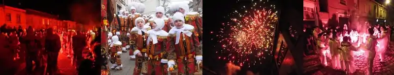 La Hestre conserve encore un carnaval assez actif dont les festivités durent 3 jours reprenant en 2016 deux sociétés de Gilles ("les Commerçants"[4] et les "Récalcitrants") sur le modèle des Gilles de Binche (sans le masque néanmoins), une société des "dames des Récalcitrants" , une société de Pierrots et une société de fantaisie "les Vîs contîns". Tout cela aura débuté 2 mois plus tôt par des soumonces où, selon la société, le costume est revêtu ou une tenue de fantaisie est de rigueur[5]. Ces festivités sont accompagnées par une ducasse (une kermesse) et une partie de la population se déguise librement en marge des cortèges. Un feu d'artifice termine le cortège du lundi soir. Le mardi clôt ce carnaval avec les différents brûlages des bosses[6].