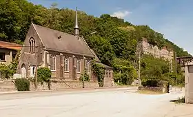 La petite église dédiée à sainte Barbe a été construite en briques et pierres de taille en 1884 dans un style néo-gothique par l'architecte E. Jamar.