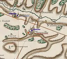 La carte de Cassini montre qu'au XVIIIe siècle, Neuville-Bômont est une paroisse avec un château. Au nord-ouest, le hameau et le château de Richemont qui formaient alors avec Certeaux une commune indépendante sont représentés.