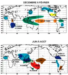Ces modifications touchent aussi d'autres océans et donc d'autres régions du globe comme dans l'océan Atlantique où les ouragans sont plus nombreux, où des conditions climatiques plus sèches que la normale apparaissent dans l'Est de l'Amérique du Sud et dans l'Est de l'Afrique et où l'Afrique australe subit des conditions climatiques plus humides[1].