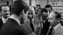 - L'écrivain Umberto Eco (28 ans lors du tournage, sans barbe, avec des lunettes et en costume-cravate, avec un verre à la main) côtoie Jeanne Moreau un instant[Note 5].