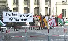 - Voir par exemple Deutsche Zukunft, Publication de la fédération régionale NPD de Rhénanie-du-Nord-Palatinat, numéro de l'été 2003, p. 3 et les autres publications citées dans le rapport 2003 du Verfassungsschutz (disponible sur le site officiel (de))