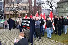 En , une organisation criminelle d'extrême-droite nommée Clandestinité nationale-socialiste est découverte. Le groupe est mis en cause dans neuf crimes racistes en Allemagne entre 2000 et 2007 ainsi que dans le meurtre d'une policière. Le ministre de l'Intérieur Hans-Peter Friedrich déclare qu'il s'agit d'une « nouvelle forme du terrorisme d'extrême droite »[36]. Le groupe est soupçonné d'être lié au NPD ; sa découverte relance le débat sur l'interdiction de ce dernier. Des manifestations contre le néo-nazisme sont organisées[37].