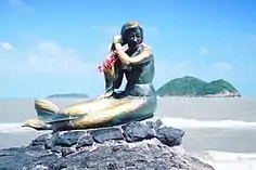 La Petite Sirène dorée est une statue située sur la plage de Samila à Songkhla, dans le sud de la Thaïlande.