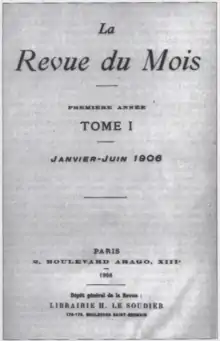 La Revue du mois est un journal scientifique et littéraire fondé en 1906[1] par Émile Borel et sa femme Marguerite Appell (dite Camille Marbo). Elle regroupait dans son comité de rédaction Jean Perrin, Paul Langevin, Aimé Cotton, Jacques Duclaux, Henri Mouton, Robert Lespieau, Noël Bernard et Louis-Jacques Simon. Léon Blum, Paul Painlevé et Édouard Herriot participent également à cette revue[2].
