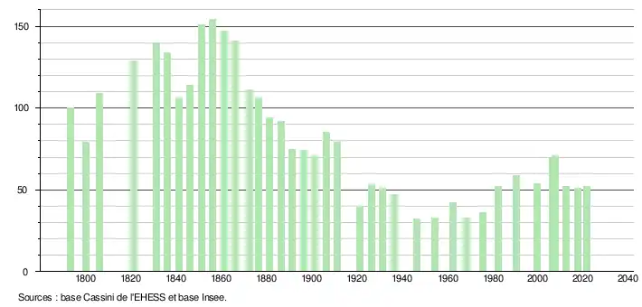 Comme dans tout le Comtat, le village, qui compte plus de 150 habitants en 1854, subit ensuite les crises agricoles provoquées par le phylloxéra et par les maladies du ver à soie, et voit sa population décroître en raison de l'exode rural.
