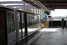 Vu de l'arrière-gare depuis la station, avec une rame au terminus | ||||||||