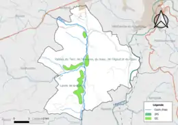 et une ZNIEFF de type 2[Note 2],[18], la « Vallée de l'Aveyron » (14 644 ha), qui s'étend sur 68 communes dont 41 dans l'Aveyron, 5 dans le Tarn et 22 dans le Tarn-et-Garonne[23].