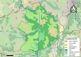 L'occupation des sols de la commune, telle qu'elle ressort de la base de données européenne d’occupation biophysique des sols Corine Land Cover (CLC), est marquée par l'importance des territoires agricoles (55,6 % en 2018), en augmentation par rapport à 1990 (53,1 %). La répartition détaillée en 2018 est la suivante : forêts (38,2 %), prairies (35,8 %), zones agricoles hétérogènes (16,7 %), milieux à végétation arbustive et/ou herbacée (5,6 %), terres arables (3,1 %), zones industrielles ou commerciales et réseaux de communication (0,6 %)[26].