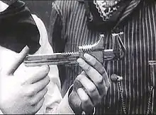 Griffith utilise un gros plan pour montrer un accessoire important, en l’occurrence une clé anglaise que l'on avait pu voir auparavant comme un révolver en plan américain.