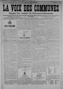 Le Premier numéro du journal Voix des Communes, 1883.
