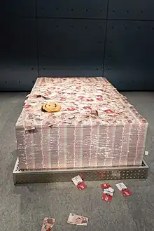 Tas de billets de 50 euros de La casa de papel exposé lors du Gamescom en 2019.