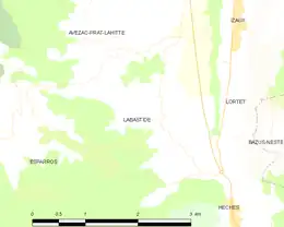 Labastide est limitrophe de cinq autres communes dont Izaux au nord-est par un simple quadripoint.