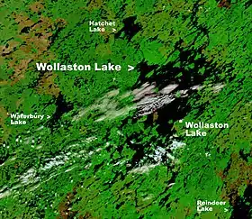 Le lac Wollaston est situé en Saskatchewan au Canada à 550 km au nord-est de Prince Albert.